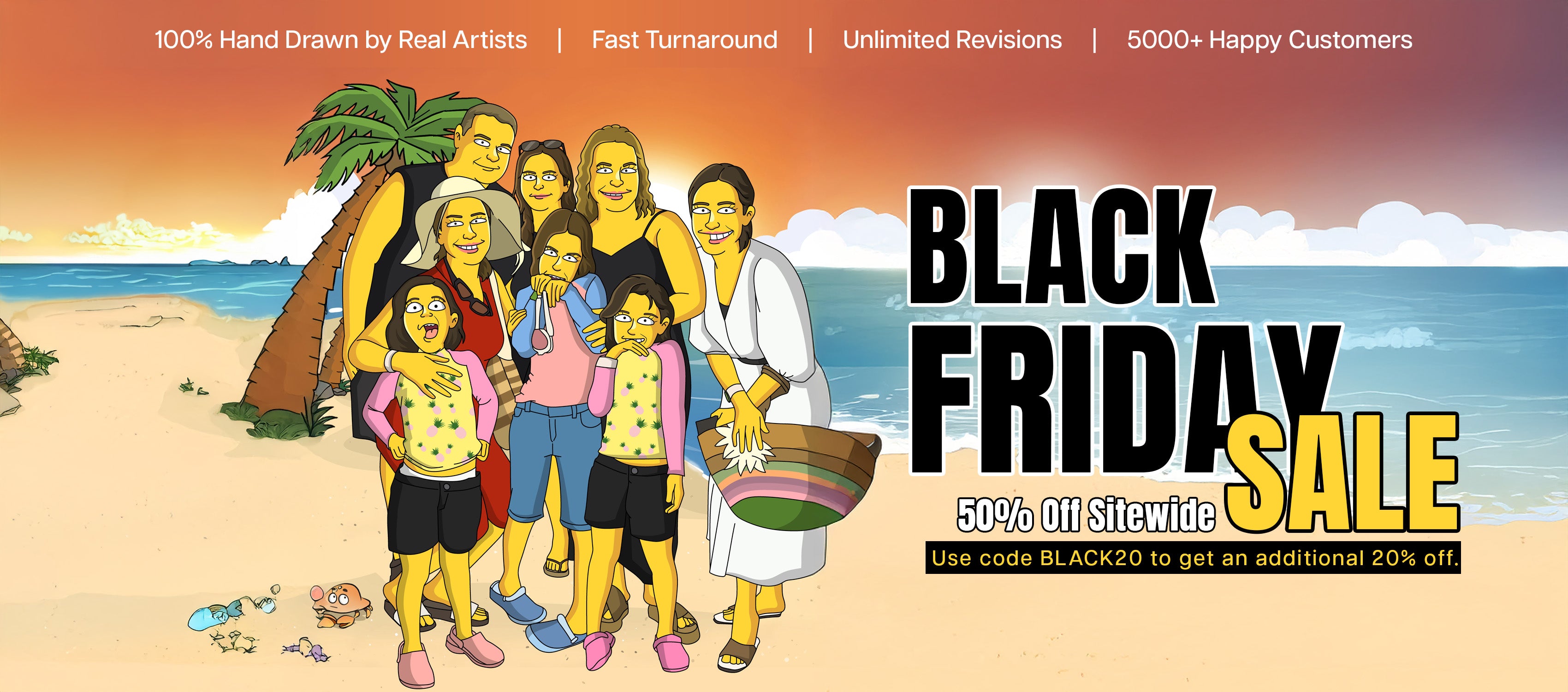 Each TurnMeCartoons portrait is custom made by real artists using proprietary digital painting techniques. This means that a dedicated professional artist will tailor make your Portrait so each Portrait is unique.